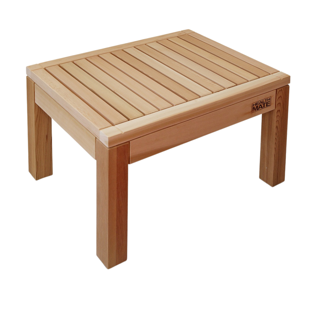 Creëer een extra zitplaats met deze onbehandelde bank in ceder voor uw Health Mate infraroodsauna.